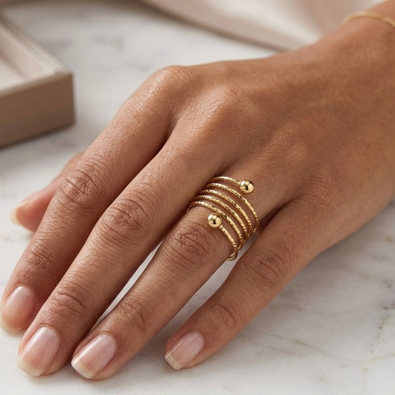 Lasciati conquistare dal fascino contemporaneo dell'Anello Vortice, un gioiello statement pensato per chi ama distinguersi con raffinata audacia. Caratterizzato da un design a spirale che si avvolge morbidamente attorno al dito, questo anello crea un effetto visivo dinamico e sofisticato. La superficie è impreziosita da una delicata finitura martellata studiata per catturare e rifrangere la luce da ogni angolazione, regalando una brillantezza unica. In Argento 925, ideale da indossare da solo come protagonista assoluto del tuo look, o in abbinamento a gioielli minimalisti.