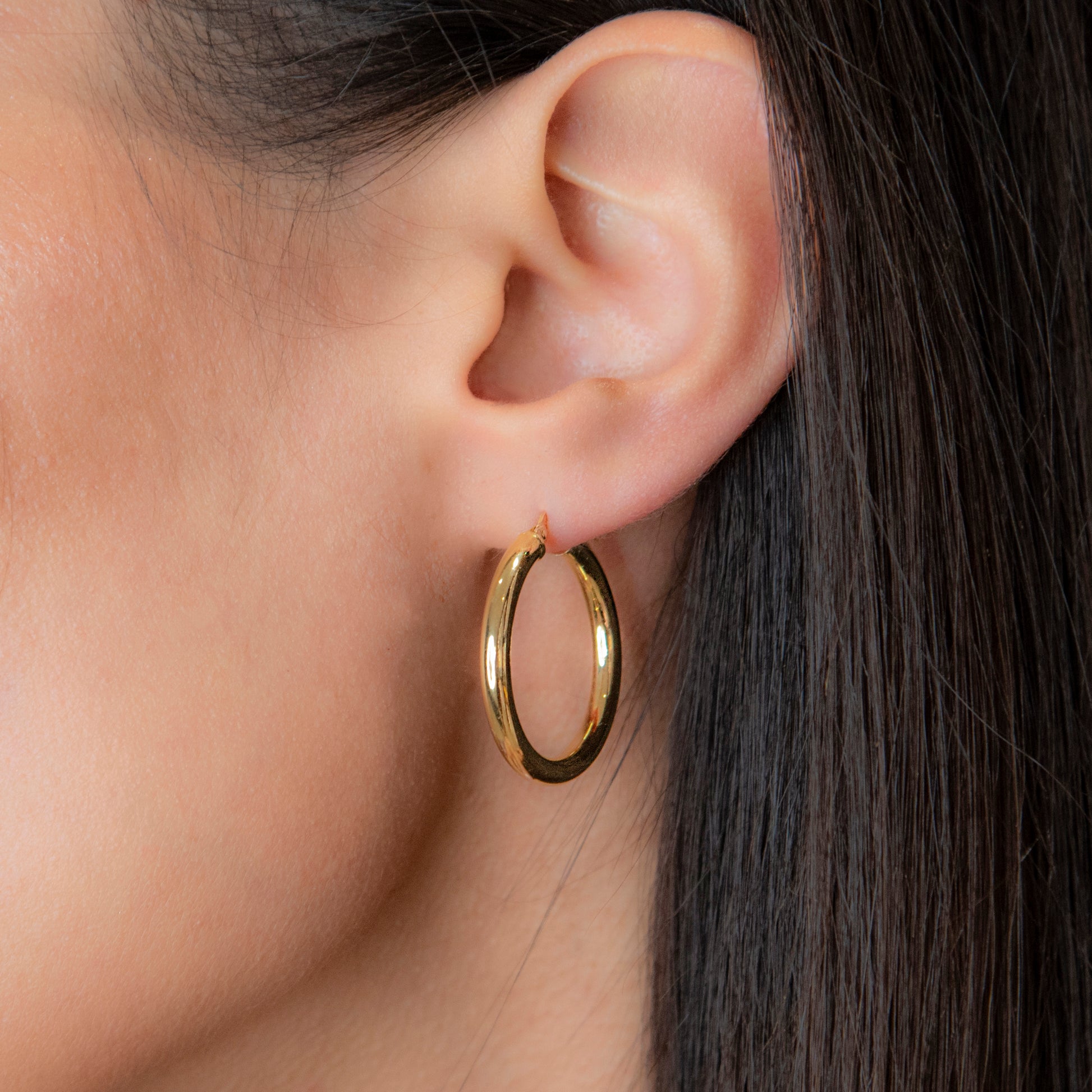 Cerchio liscio in argento 925 anallergico dal diametro di 2 cm. Presenta una forma bombata, con canna 4 mm. La superficie è lucida e riflettente, il che aggiunge un tocco di raffinatezza. La chiusura è a scatto, garantendo una buona sicurezza durante l'uso. Sono ideali per occasioni sia casual che formali, grazie al loro design classico e versatile.