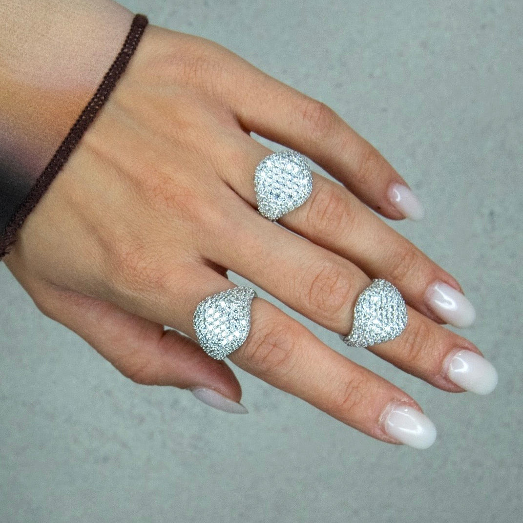 L' anello chevalier pavé tempestato di zirconi incastonati a mano in Argento 925 anallergico è un gioiello che combina l'eleganza classica con un tocco di modernità e lusso. Ogni zircone è posizionato e fissato manualmente da un artigiano esperto, garantendo una disposizione precisa e sicura delle pietre. Questo processo richiede grande abilità e attenzione ai dettagli. E' perfetto per aggiungere un tocco di eleganza a qualsiasi outfit, sia per occasioni formali che per momenti più casual, grazie alla sua capacità di attirare l'attenzione e di esprimere personalità e stile.