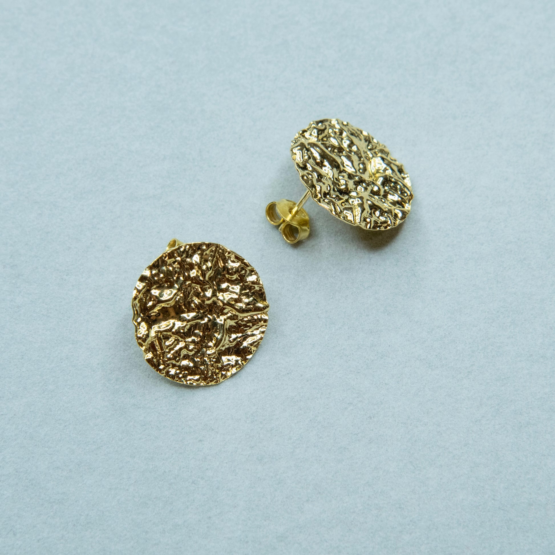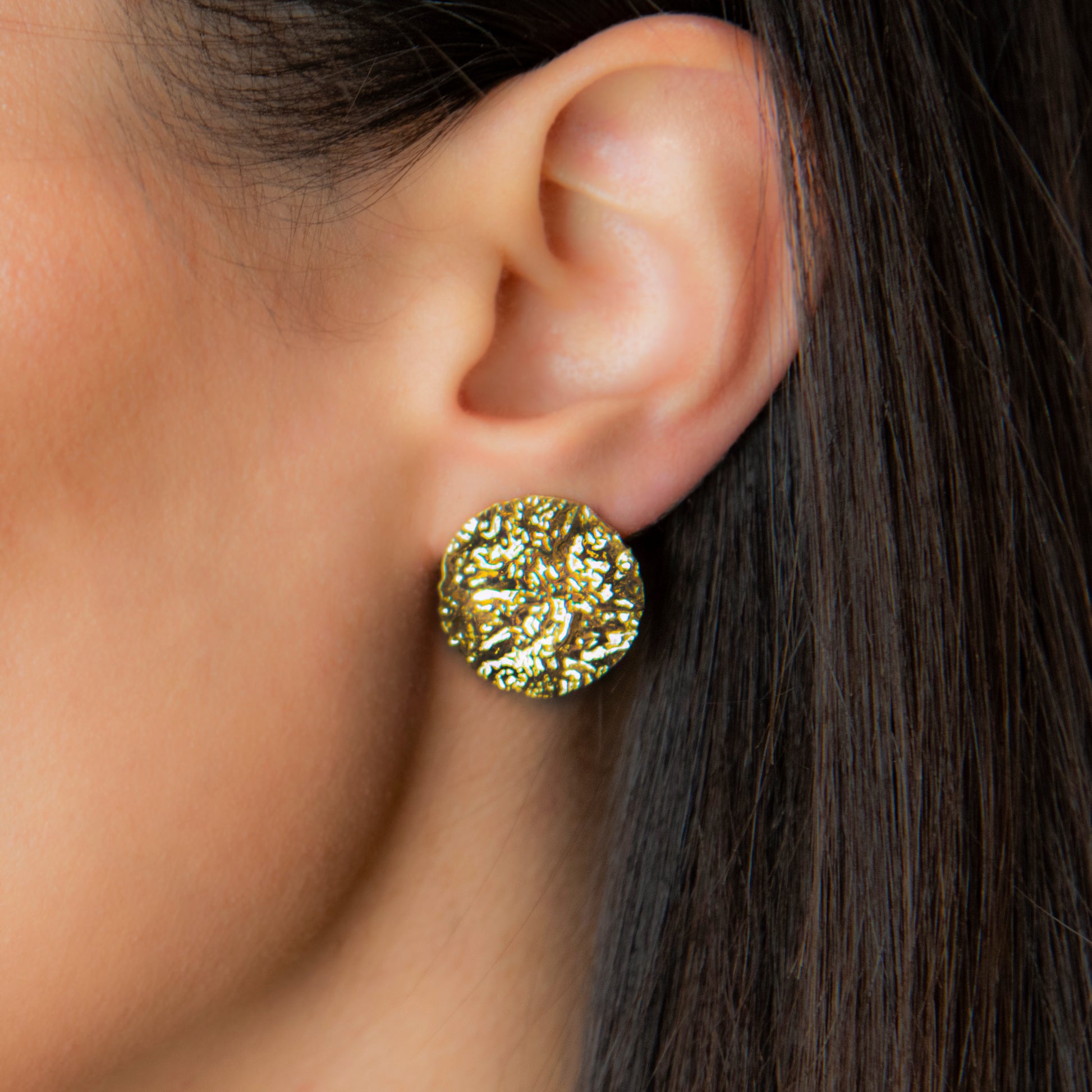 Gli orecchini a bottone martellati in argento 925 sono gioielli dal design distintivo e contemporaneo, caratterizzati da una superficie volutamente irregolare che richiama l’effetto “stropicciato” o accartocciato. La chiusura è a perno con farfallina.
