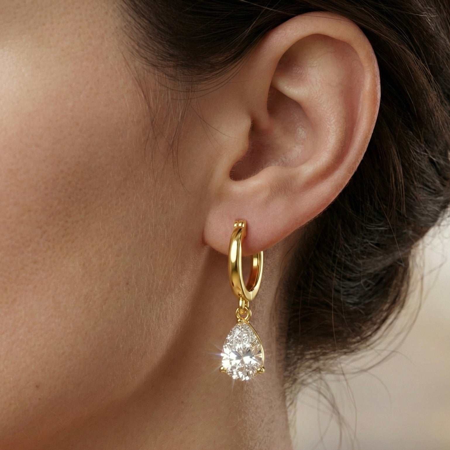 Gli orecchini MINI MORF sono in Argento 925, realizzati nel nostro Laboratorio Orafo. Sono composti da cerchietti con chiusura a forchetta e un pendente a goccia con pietra a forma di goccia, incastonata con tre griffe.