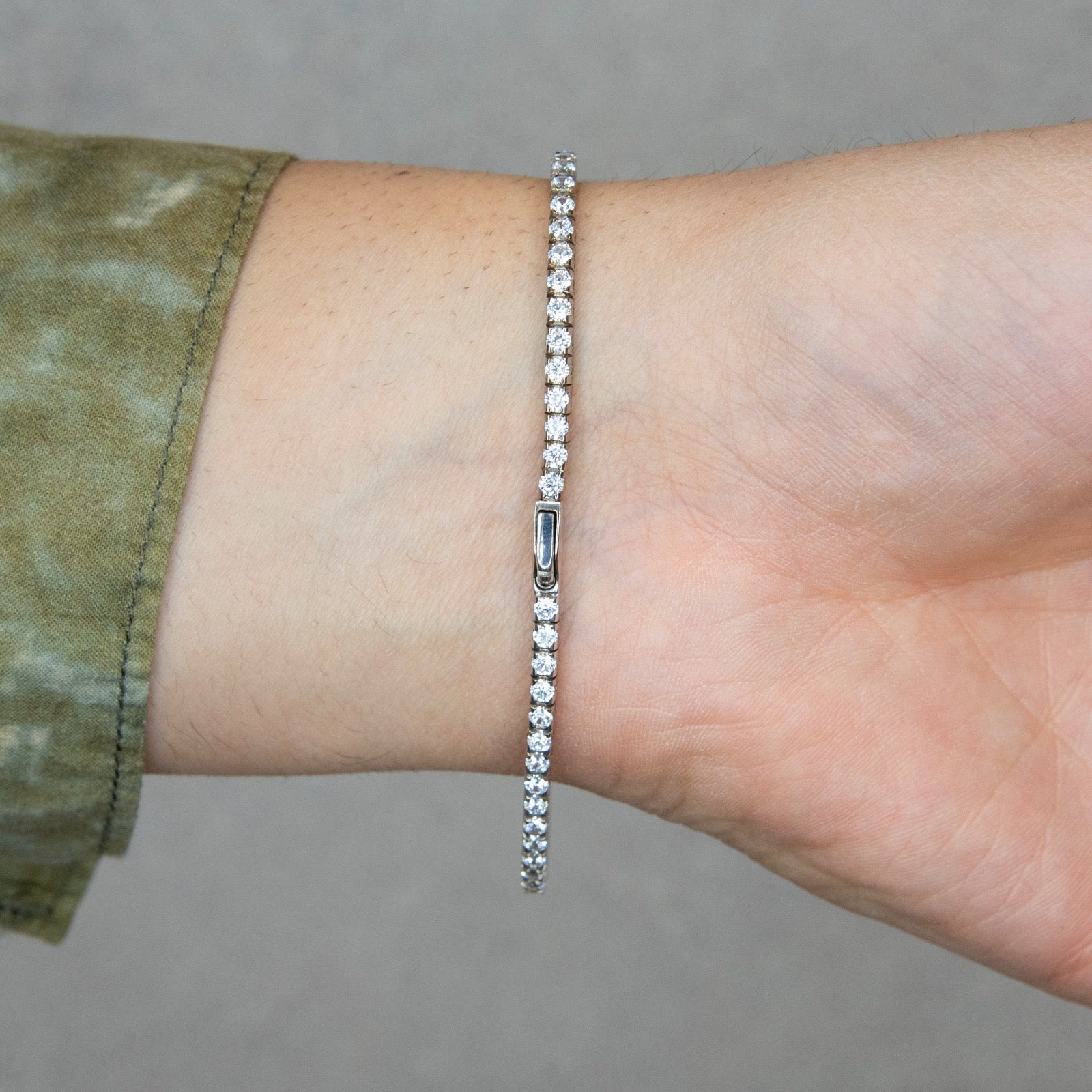 Il bracciale tennis è un esempio di raffinata manifattura Italiana, è in argento 925. La struttura è flessibile e robusta. I castoni sono collegati tra loro tramite piccole cerniere che permettono al bracciale di adattarsi comodamente al polso, offrendo sia resistenza che un'elevata vestibilità. Il bracciale è dotato di una chiusura di sicurezza, che si integra perfettamente nel design, garantendo che rimanga saldamente al polso, si tratta di una chiusura con molla d’acciaio che previene aperture accidentali. Questa caratteristica, unita all'eleganza del design, rende il bracciale non solo un accessorio di moda, ma anche un pezzo prezioso da indossare con fiducia in ogni occasione. Questo bracciale incarna l'artigianalità italiana attraverso la sua struttura meticolosa e il design elegante.